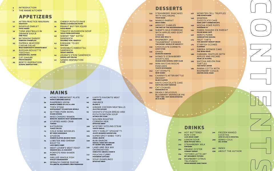Along with the easy-to-follow recipes are stunning anime-style food illustrations and information about the exact episodes that feature the foods, allowing The Anime Chef to immerse you in your favorite animated worlds while satisfying your appetite.